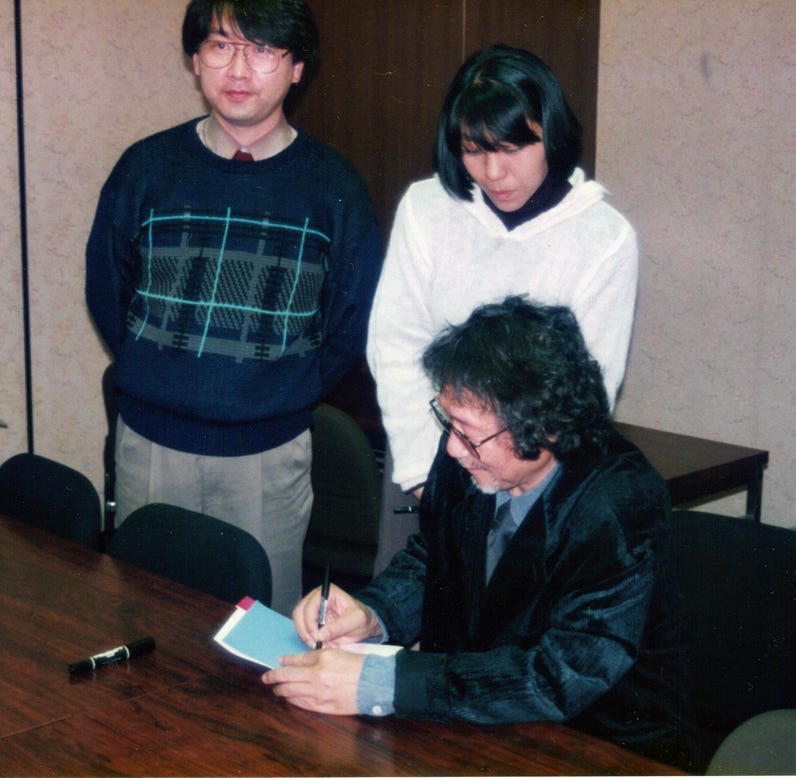 その期待の(?)新人君の本来の仕事はインターネットの古本屋(銀河望遠鏡、といいます)を自称していますが、これがもうかれこれ7年も鳴かず飛ばずの低空飛行。最近では、よせばいいのにヒロさんの実行委員会の他にも各種活動に手を広げ、これがほとんどどれもボランティア、ということですから、本業がしっぽを巻いて逃げ出してしまいそうな次第ですのに、本人はいたって満足そうに「だって面白いんだもん」とノタマッテ反省の素振りも見せていないとか……。