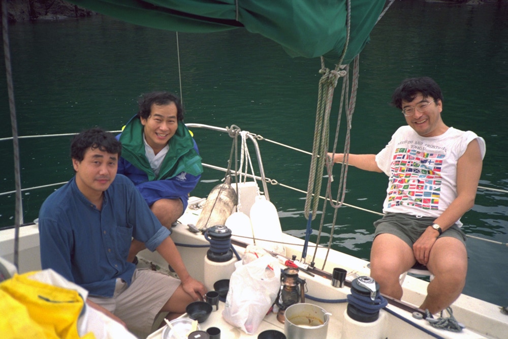 結局何年間オーナーだったのか、正確には覚えていないが、今思うと伊豆の海の上で陽を浴び、風を受けて進んだり、夜の海をGPS(当時のGPSはズレがひどく、気がつくと海上ではなく、陸の上をヨットが進んでいる!? なんてこともよくあった)頼りに眠気をこらえながら交代で操船する、残りのメンバーは双胴船の胴の部分に潜り込んで揺られながら眠る、なんてこともあって、なんだか懐かしい。メンバーのOさんはとても料理がうまく、釣った魚を材料に料理してくれたりと、ヨットだけではなく、ヨットを乗りに行く、ということ自体が合宿みたいで楽しかったんだろう。